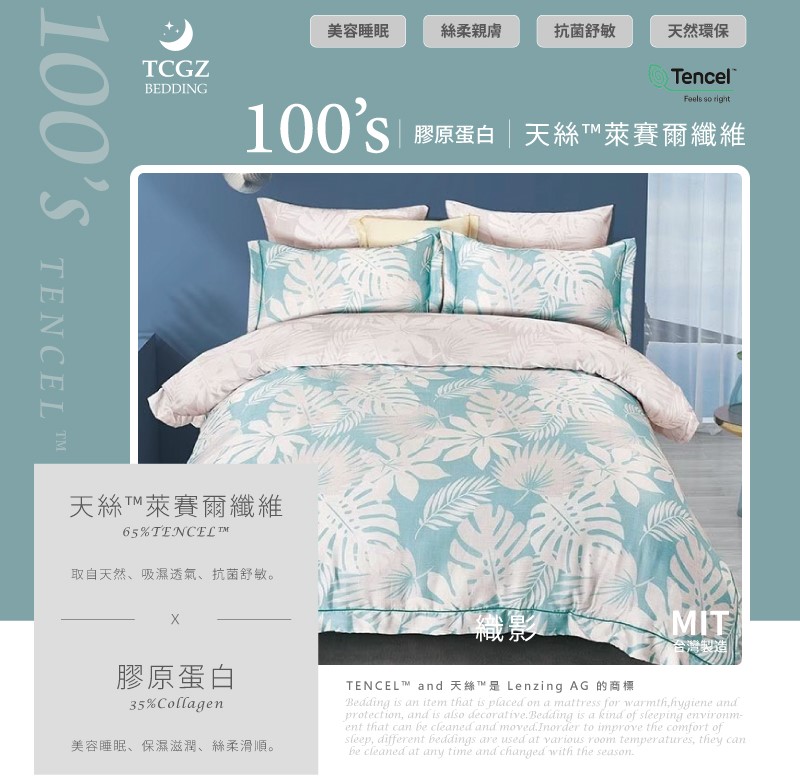 台灣製造 Tencel天絲™纖維製成的 100支膠原蛋白【織影】 薄床包舖棉兩用被四件式組 數量