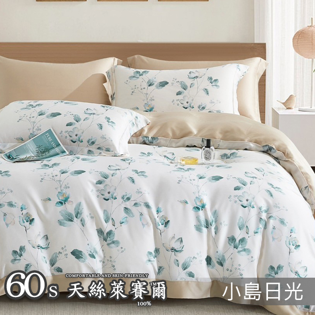 天絲™纖維製成的 100%60支義大利 素色 舖棉床罩舖棉兩用被七件式組-藏青藍