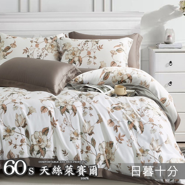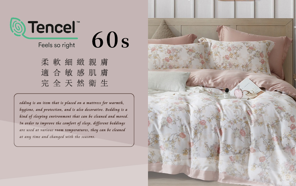 Tencel天絲™萊賽爾纖維製成的100%60支 凡芮思【吉薇妮】 薄床包鋪棉兩用被四件式組-60abs