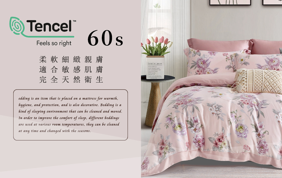Tencel天絲™萊賽爾纖維製成的100%60支 凡芮思【愛麗絲花園】鋪棉床包鋪棉兩用被四件式組-60aas