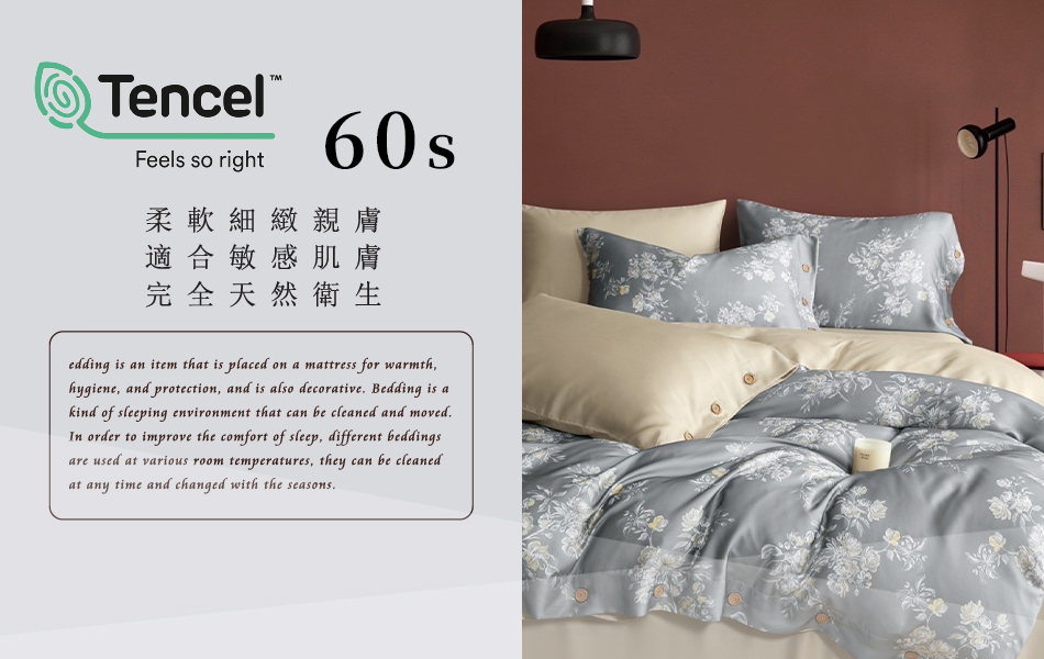 Tencel天絲™萊賽爾纖維製成的 100%60支 【妍語-灰】 舖棉床罩舖棉兩用被七件式組-60a7