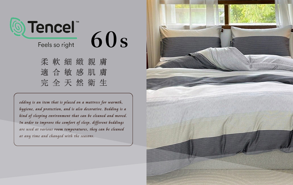 Tencel天絲™萊賽爾纖維製成的 100%60支 【6016】 薄床包舖棉兩用被四件式組-60ab