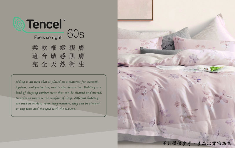 Tencel天絲™萊賽爾纖維製成的 100%60支 【甜蜜一葉粉】 薄床包舖棉兩用被四件式組 數量