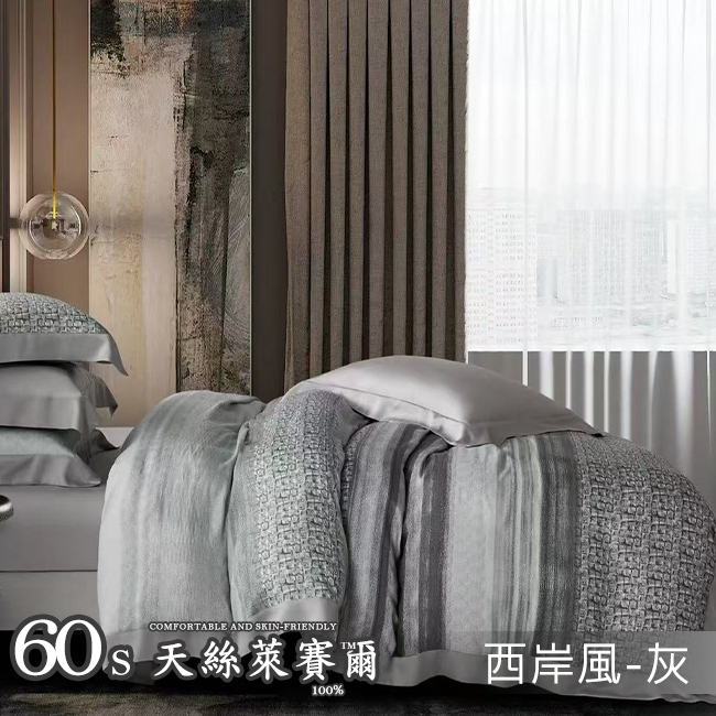 Tencel天絲™萊賽爾纖維製成的 100%60支 【青禾琉璃-綠】 薄床包舖棉兩用被四件式組-60ab