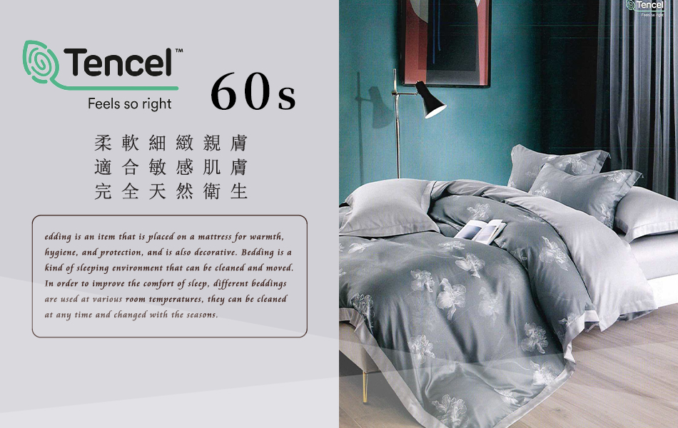 Tencel天絲™萊賽爾纖維製成的 100%60支 【去感知】 薄床包舖棉兩用被四件式組-60ab