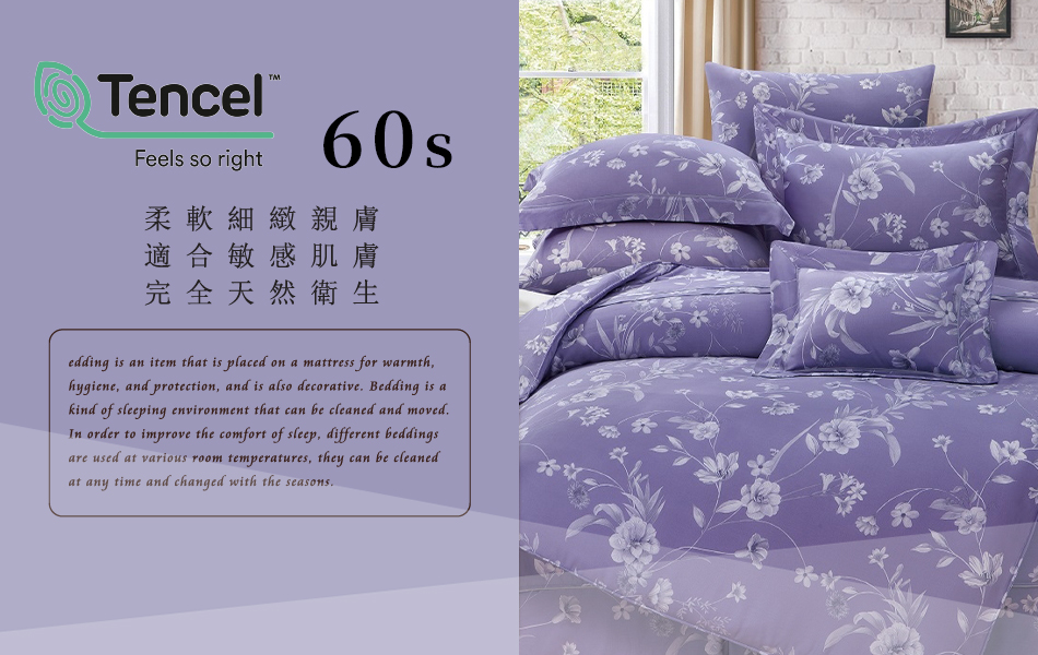 Tencel天絲™萊賽爾纖維製成的 100%60支 【芬妮芙-紫】 薄床包鋪棉兩用被四件式組-60ab