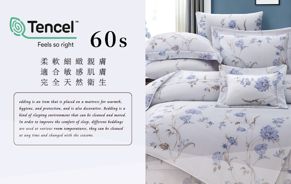 Tencel天絲™萊賽爾纖維製成的 100%60支 【凡賽絲】 薄床包舖棉兩用被四件式組-60ab