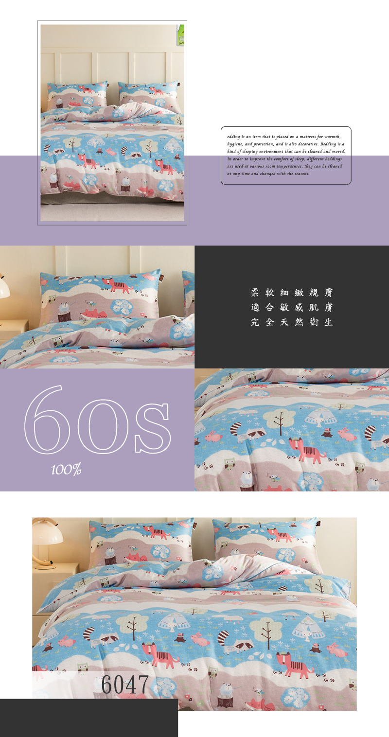 Tencel天絲™萊賽爾纖維製成的 100%60支 【6047】 薄床包舖棉兩用被四件式組