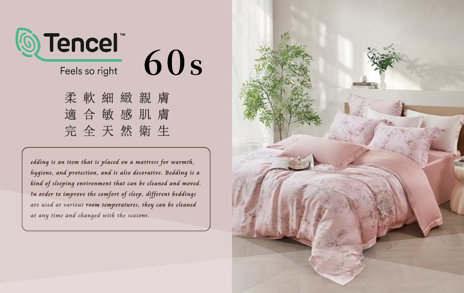 Tencel天絲™萊賽爾纖維製成的 100%60支 【LJSM-2823】 薄床包舖棉兩用被四件式組-60ab