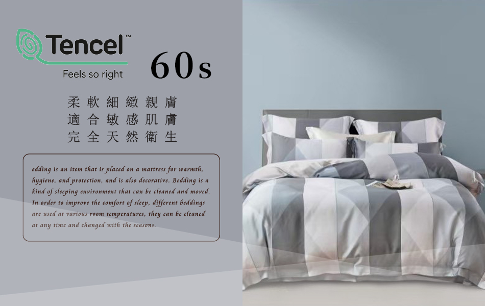 Tencel天絲™萊賽爾纖維製成的 100%60支 【LJSM-2773灰】 薄床包舖棉兩用被四件式組-60ab