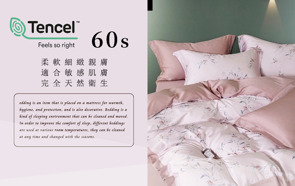 Tencel天絲™萊賽爾纖維製成的 100%60支 【夕蘭-粉】 鋪棉床包舖棉兩用被四件式組-60aa