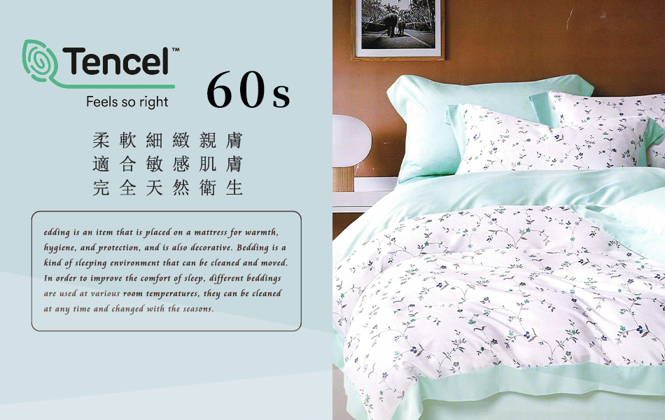 Tencel天絲™萊賽爾纖維製成的 100%60支 【幻蓮-藍】 鋪棉床包舖棉兩用被四件式組-60aa