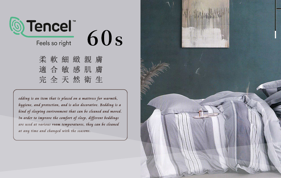 Tencel天絲™萊賽爾纖維製成的 100%60支 【佩德羅-灰】 鋪棉床包舖棉兩用被四件式組-60aa