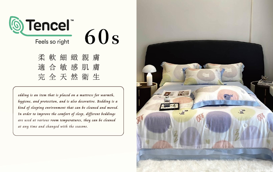 Tencel天絲™萊賽爾纖維製成的 100%60支 【卡羅】 鋪棉床包舖棉兩用被四件式組-60aa