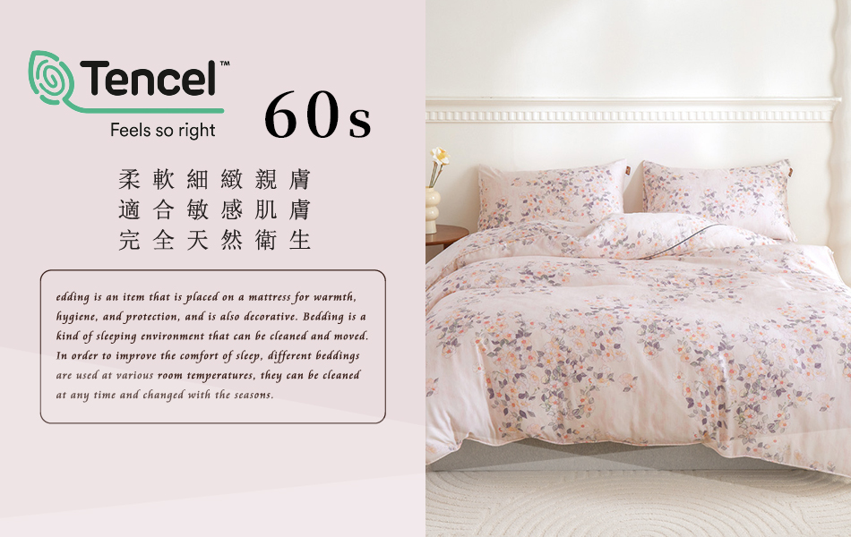 Tencel天絲™萊賽爾纖維製成的 100%60支 【6017】 鋪棉床包舖棉兩用被四件式組-60aa