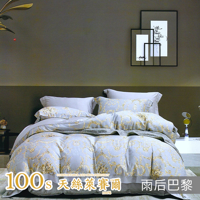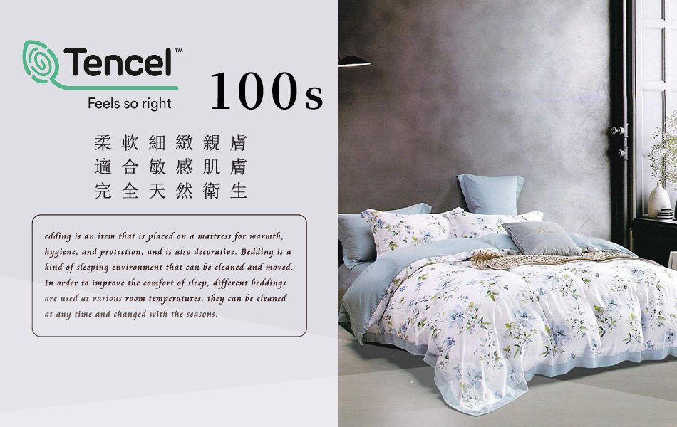 Tencel天絲™萊賽爾纖維製成的 100%100支 【馥-藍】 薄床包鋪棉兩用被四件式組-100ab