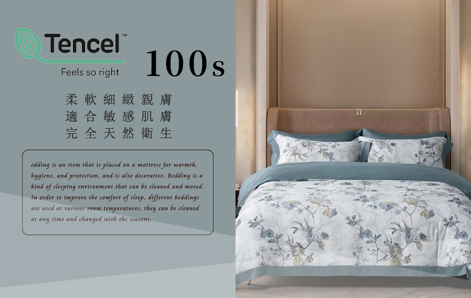 Tencel天絲™萊賽爾纖維製成的 100%100支 【摩洛哥天空-藍】 薄床包鋪棉兩用被四件式組-100ab