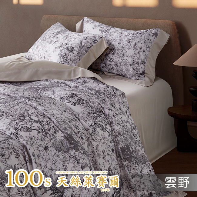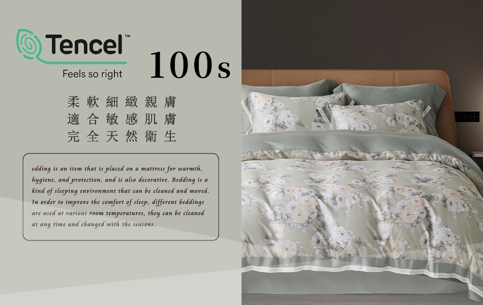 Tencel天絲™萊賽爾纖維製成的 100%100支 【依蘭沉煙-綠】 薄床包鋪棉兩用被四件式組-100ab