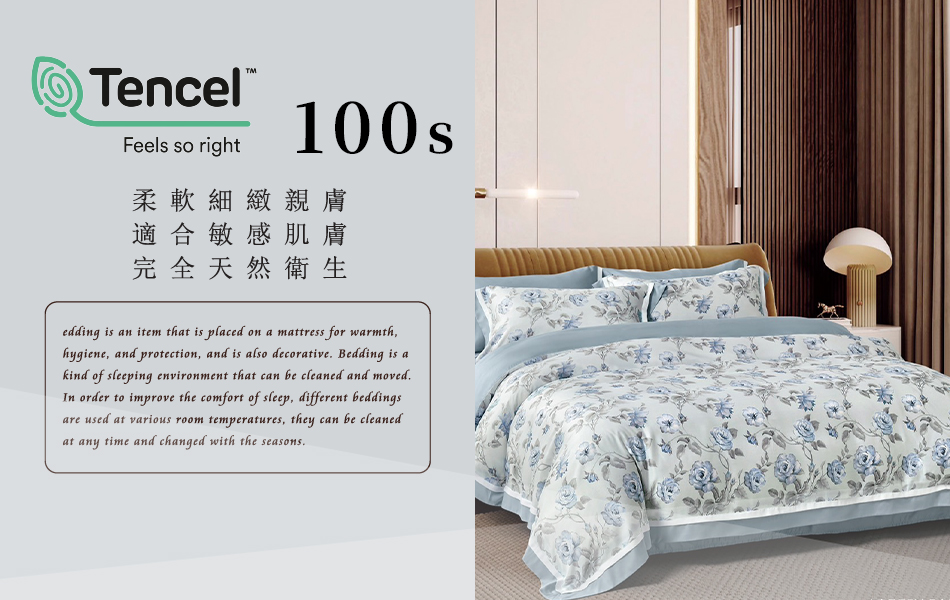 Tencel天絲™萊賽爾纖維製成的 100%100支 【伊斯頓-藍】 薄床包鋪棉兩用被四件式組-100ab