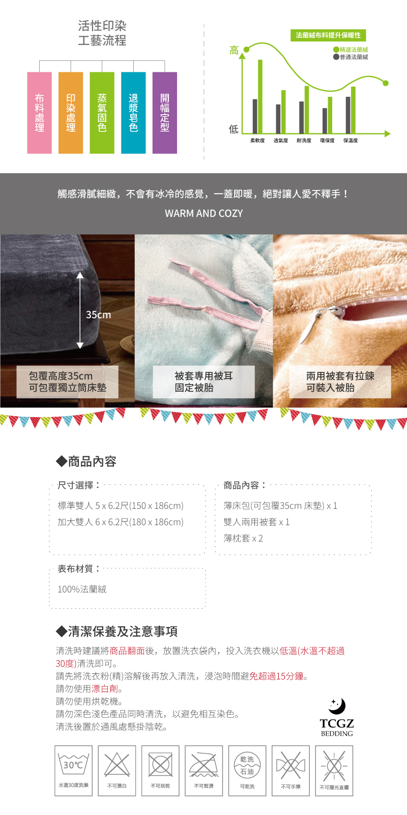 法蘭絨 鋪棉床包兩用被四件式組 【挪威條紋】保暖 冬天必備 加高35cm