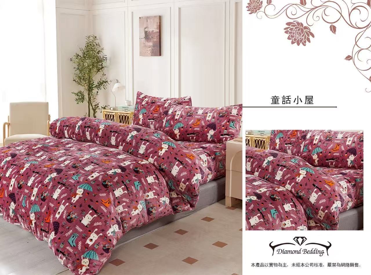 法蘭絨 鋪棉床包兩用被四件式組 【童話小屋】保暖 冬天必備 加高35cm