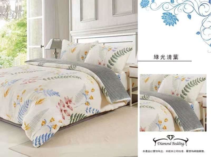 法蘭絨 鋪棉床包兩用被四件式組 【綠色清葉】保暖 冬天必備 加高35cm