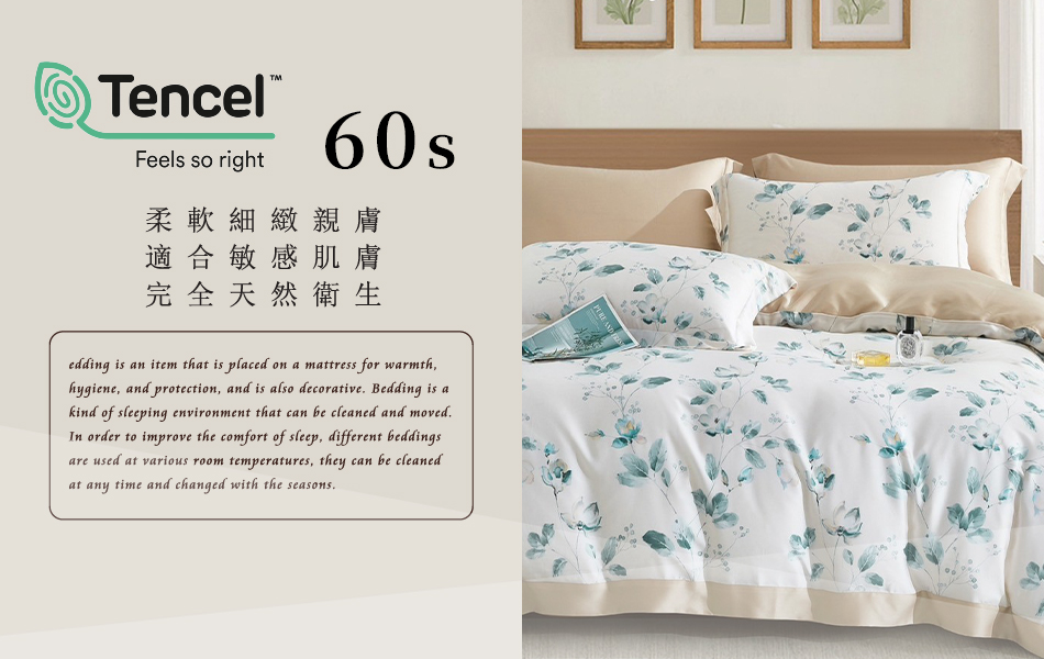 Tencel天絲™萊賽爾纖維製成的100%60支 凡芮思【小島日光】 薄床包鋪棉兩用被四件式組-60abs