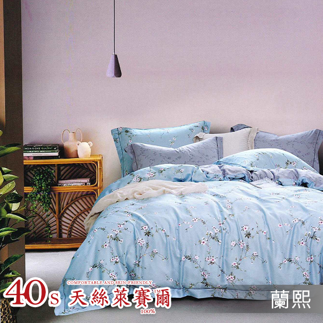 Tencel天絲™萊賽爾纖維製成的 100%40支 【羅麗花】 薄床包舖棉兩用被四件式組-40ab