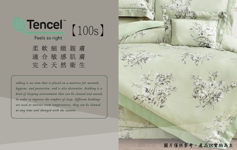 Tencel天絲™萊賽爾纖維製成的 100%100支 【伊莎芮-綠】 舖棉床罩舖棉兩用被七件式組