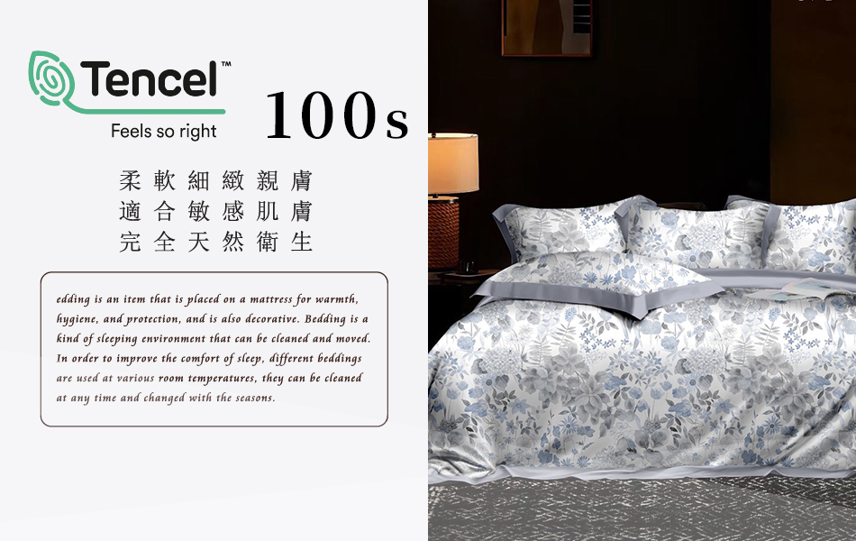 Tencel天絲™萊賽爾纖維製成的 100%100支 【山月不知瑤-藍】 薄床包舖棉兩用被四件式組-100ab