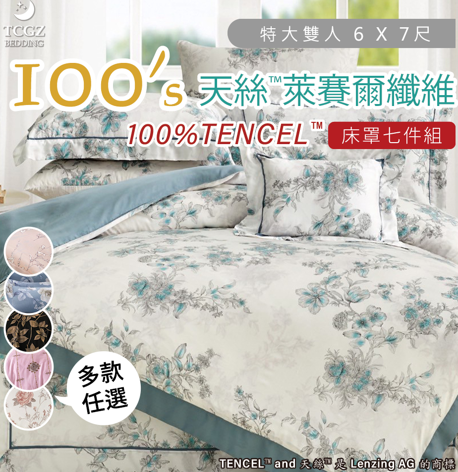Tencel天絲™萊賽爾纖維製成的 100%100支 特大雙人 6 x 7尺 舖棉床罩舖棉兩用被七件式組-多款選擇-100a7