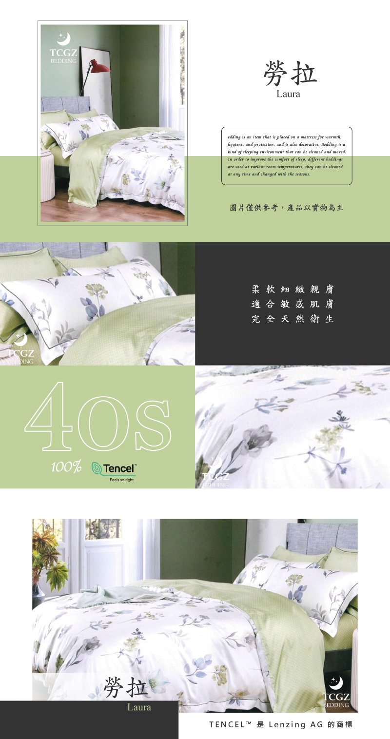 Tencel天絲™萊賽爾纖維製成的 100%40支 【勞拉】 舖棉床罩舖棉兩用被七件式組