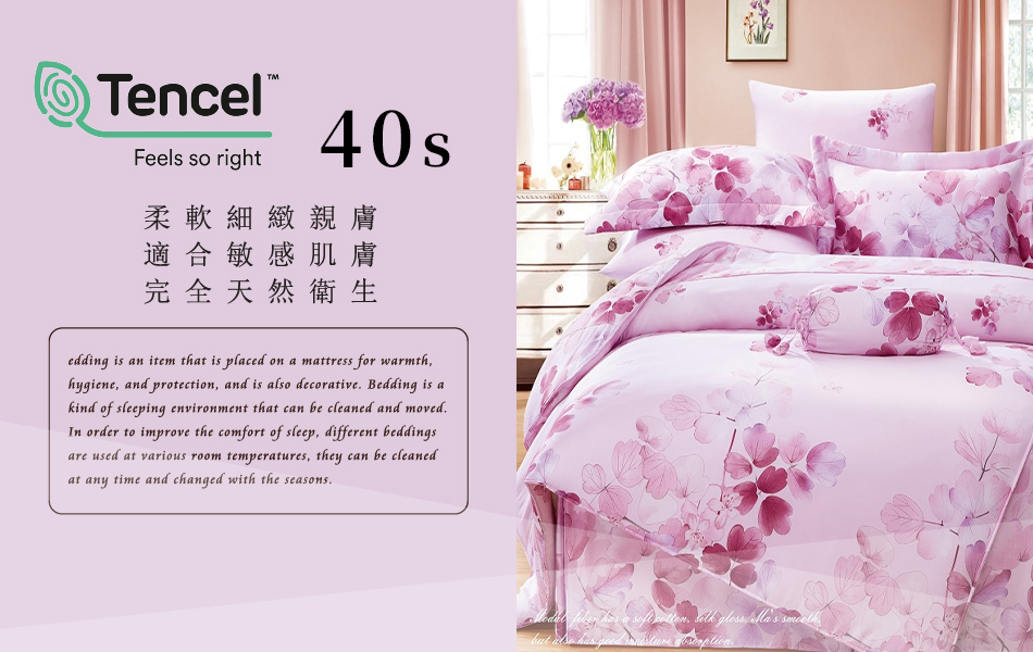Tencel天絲™萊賽爾纖維製成的 100%40支 【卉影粉】 鋪棉床包舖棉兩用被四件式組-40aa
