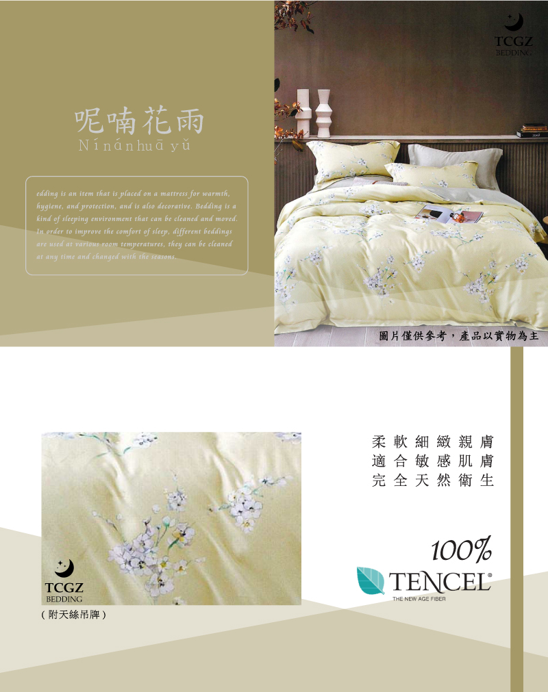 Tencel天絲™萊賽爾纖維製成的 100%40支 【呢喃花雨】 薄床包舖棉兩用被四件式組
