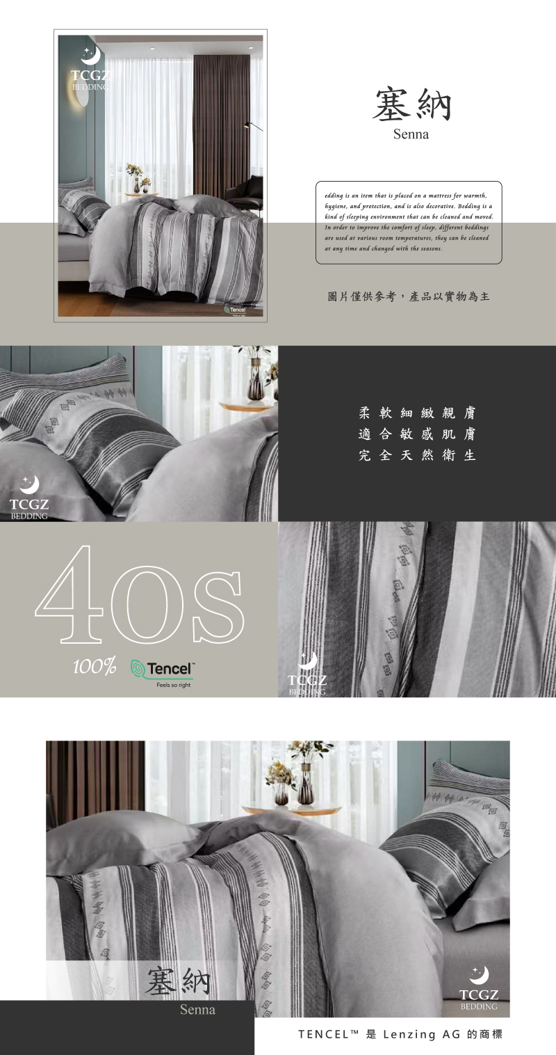 Tencel天絲™萊賽爾纖維製成的 100%40支 【塞納】 薄床包舖棉兩用被四件式組