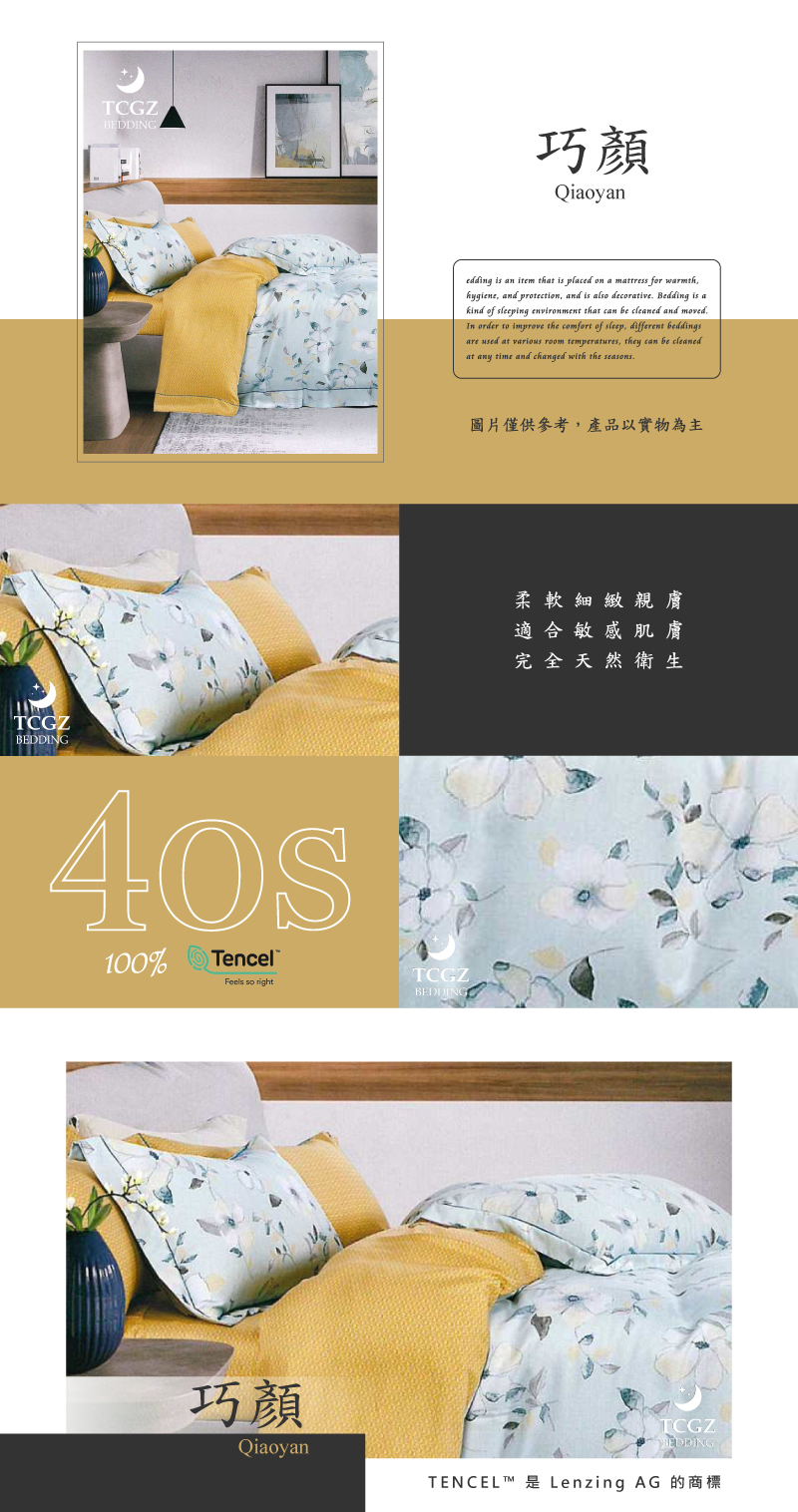 Tencel天絲™萊賽爾纖維製成的 100%40支 【巧顏】 舖棉床罩舖棉兩用被七件式組