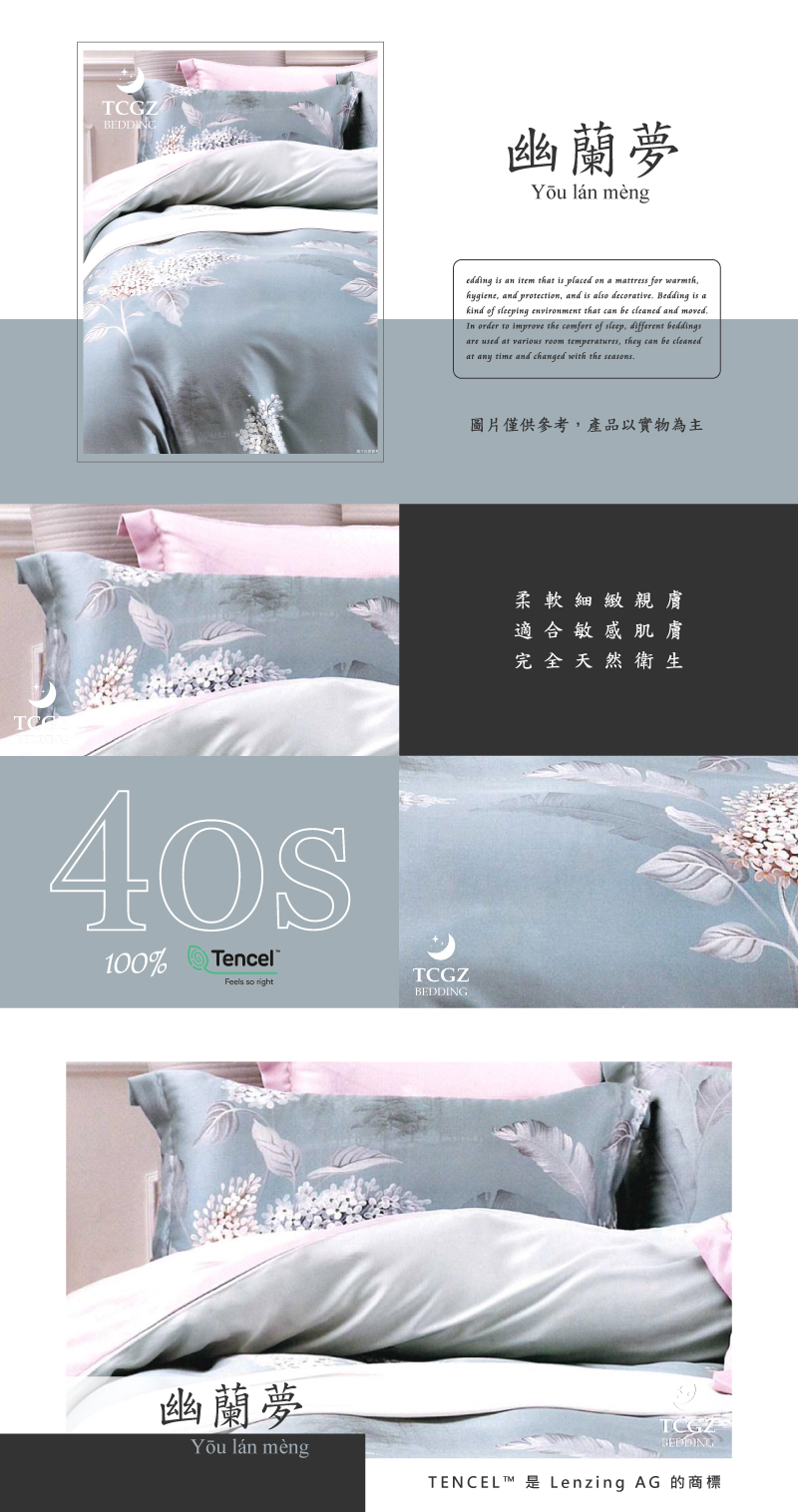 Tencel天絲™萊賽爾纖維製成的 100%40支 【幽蘭夢】 舖棉床罩舖棉兩用被七件式組
