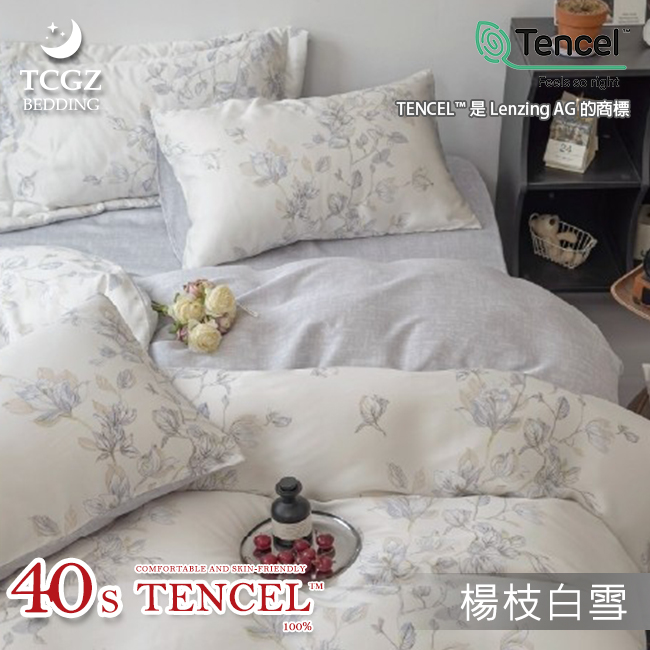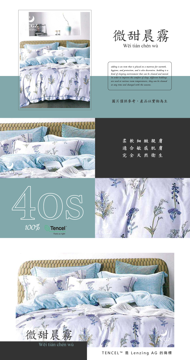 Tencel天絲™萊賽爾纖維製成的 100%40支 【微甜晨霧】 薄床包舖棉兩用被四件式組