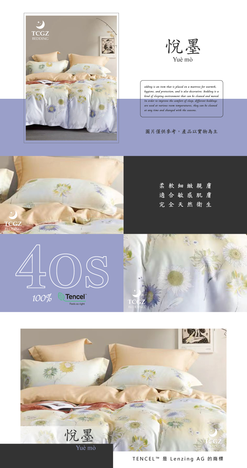 Tencel天絲™萊賽爾纖維製成的 100%40支 【悅墨】 舖棉床罩舖棉兩用被七件式組