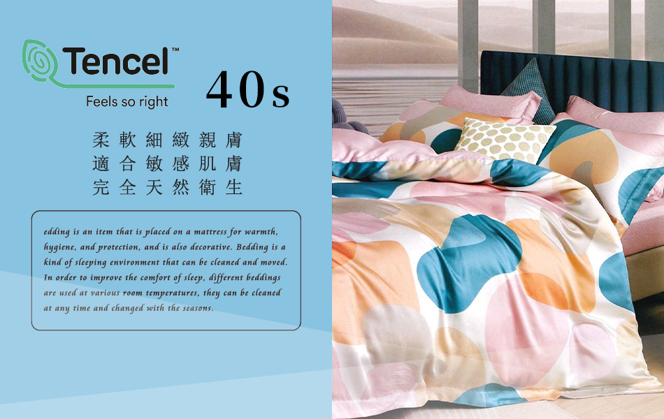 Tencel天絲™萊賽爾纖維製成的 100%40支 【悅活】 鋪棉床包舖棉兩用被四件式組-40aa