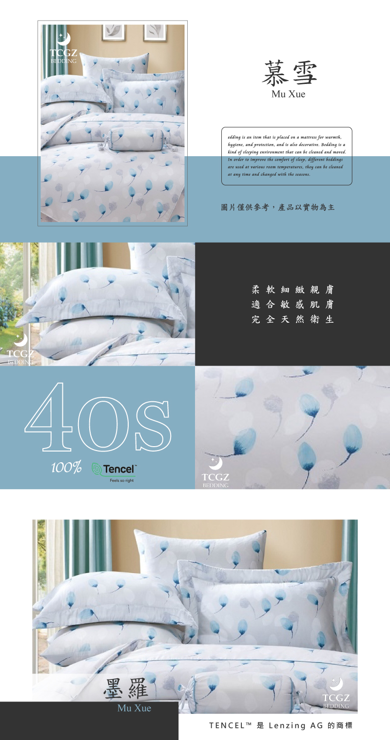 Tencel天絲™萊賽爾纖維製成的 100%40支 【慕雪】 舖棉床罩舖棉兩用被七件式組