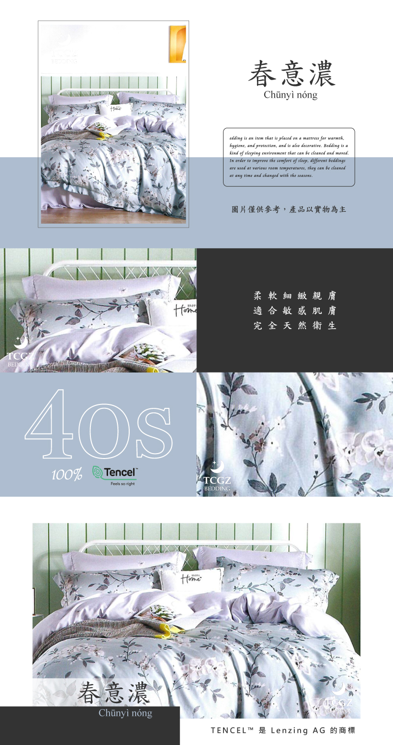 Tencel天絲™萊賽爾纖維製成的 100%40支 【春意濃】 薄床包舖棉兩用被四件式組