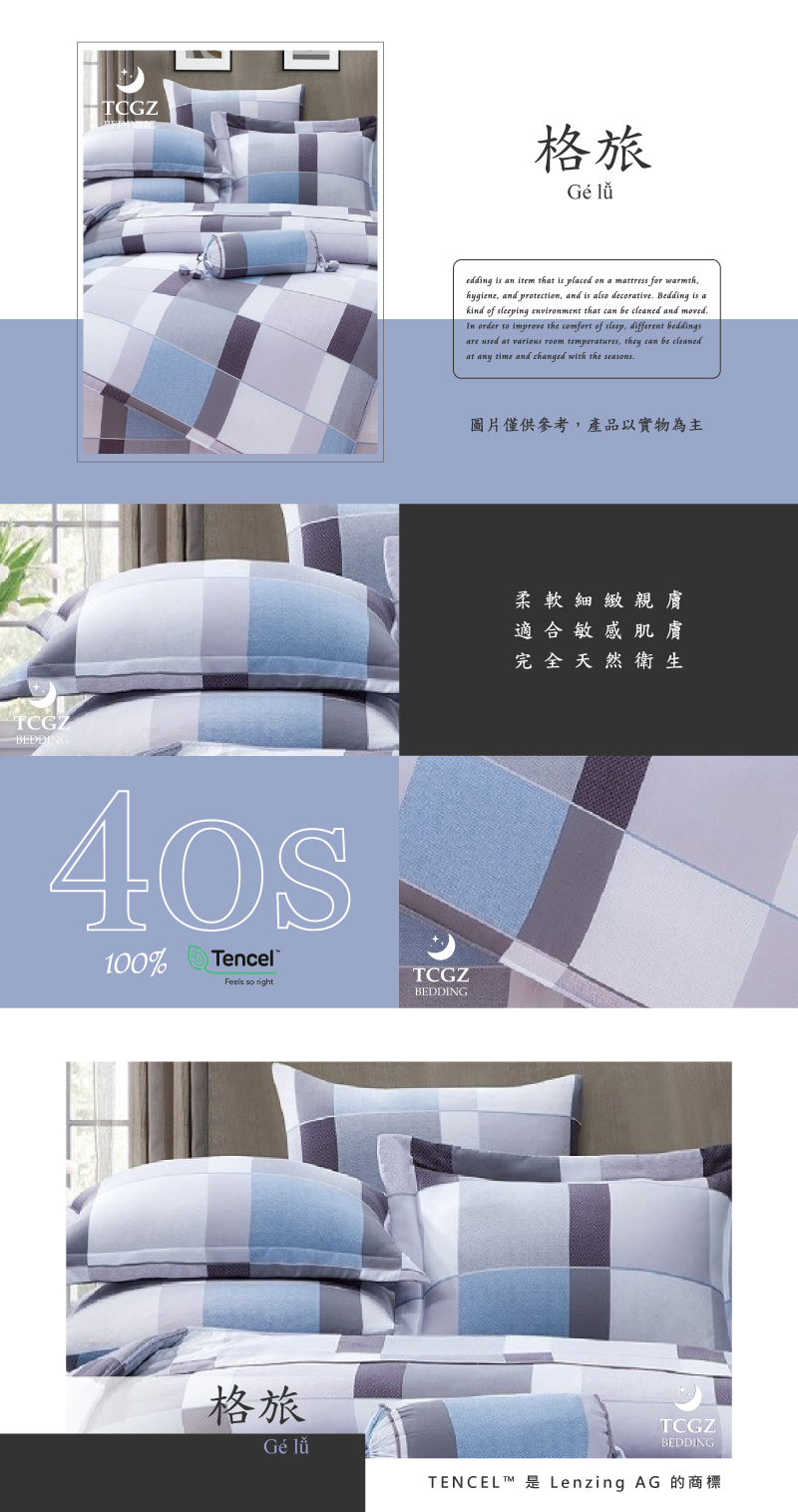 Tencel天絲™萊賽爾纖維製成的 100%40支 【格旅】 舖棉床罩舖棉兩用被七件式組