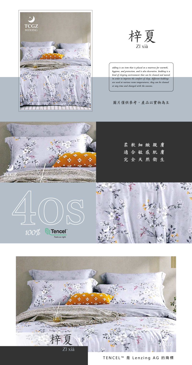 Tencel天絲™萊賽爾纖維製成的 100%40支 【梓夏】 薄床包舖棉兩用被四件式組