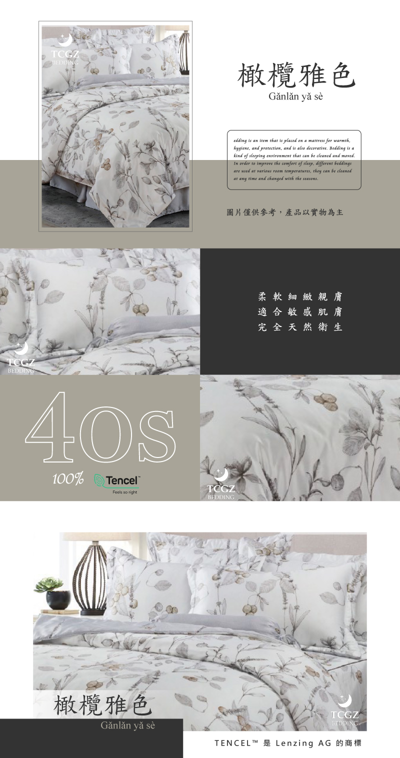 Tencel天絲™萊賽爾纖維製成的 100%40支 【橄欖雅色】 薄床包舖棉兩用被四件式組