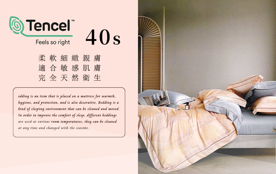 Tencel天絲™萊賽爾纖維製成的 100%40支 【溫格-玉】 鋪棉床包舖棉兩用被四件式組-40aa