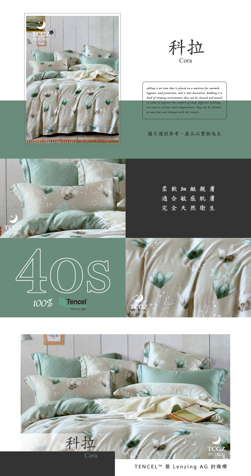 Tencel天絲™萊賽爾纖維製成的 100%40支 【科拉】 舖棉床罩舖棉兩用被七件式組