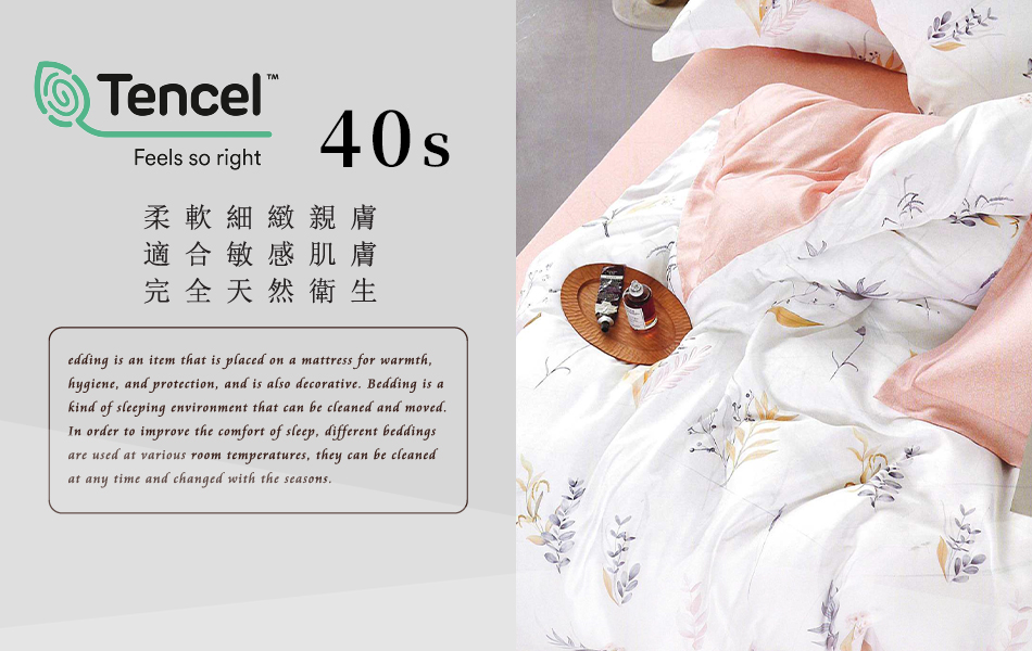 Tencel天絲™萊賽爾纖維製成的 100%40支 【紫夏-粉】 鋪棉床包舖棉兩用被四件式組-40aa