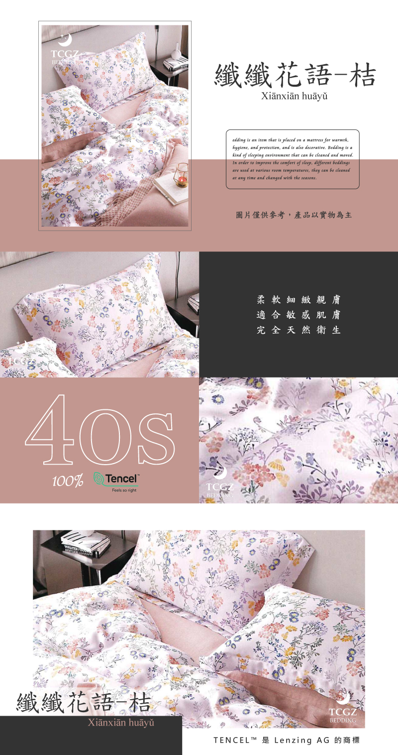 Tencel天絲™萊賽爾纖維製成的 100%40支 【纖纖花語-桔】 舖棉床罩舖棉兩用被七件式組
