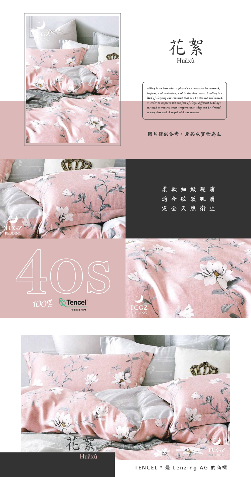 Tencel天絲™萊賽爾纖維製成的 100%40支 【花絮】 舖棉床罩舖棉兩用被七件式組